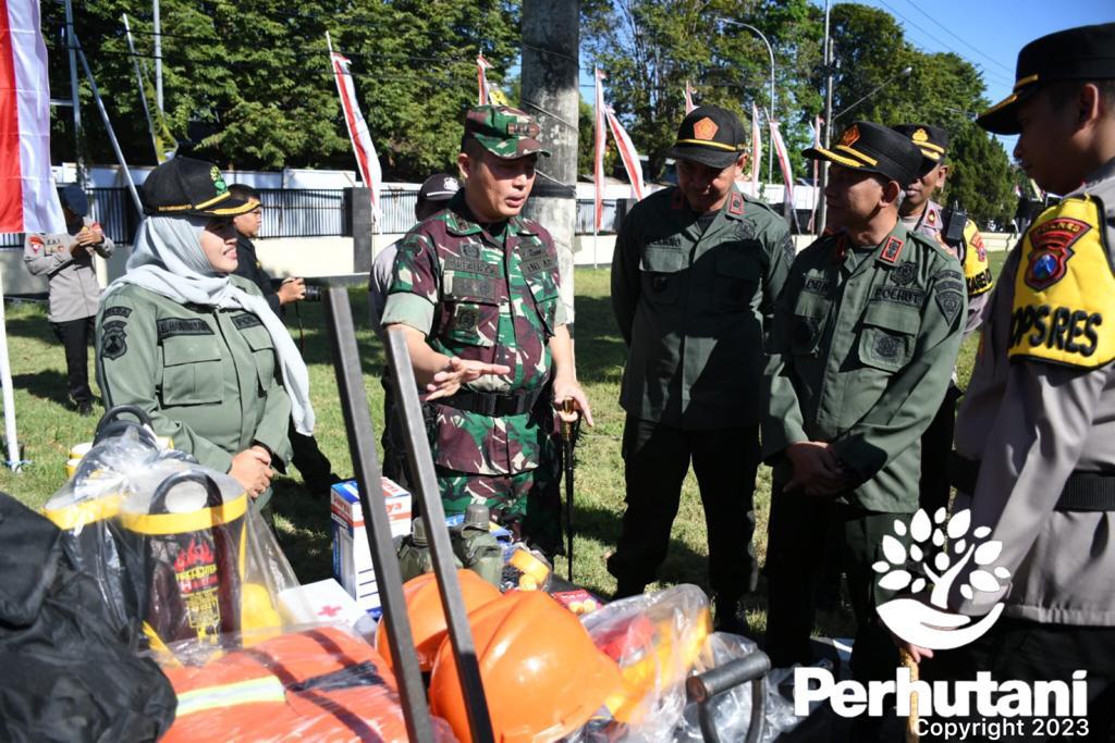 BONDOWOSO, PERHUTANI (11/07/2023) | Jajaran Perum Perhutani Kesatuan Pemangkuan Hutan (KPH) Bondowoso turut serta berpartisipasi dalam apel bersama Kesiapsiagaan Penanggulangan Bencana Alam Kebakaran Hutan dan Lahan (Karhutla) Tahun 2023, bersama Forum Koordinasi Pimpinan Daerah (Forkopimda) yang digelar di Lapangan Apel Mapolres Bondowosso Jln. Veteran No. 01 Bondowoso, pada Senin (11/07).