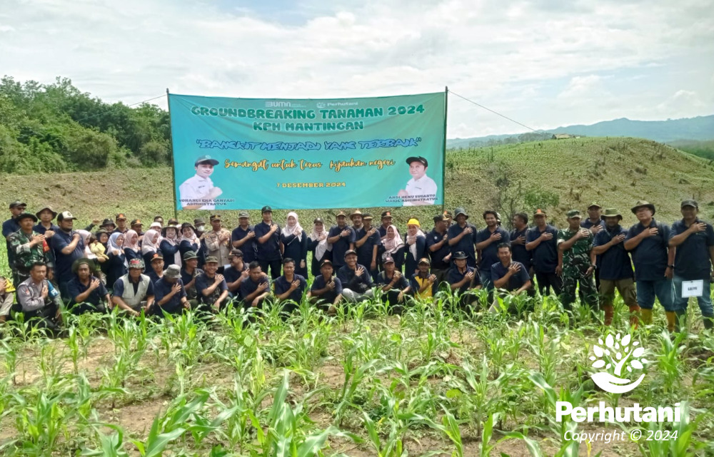 MANTINGAN, PERHUTANI (09/12/2024) | Kesatuan Pemangkuan Hutan (KPH) Mantingan bersama dengan Komando Rayon Militer (KORAMIL) Bulu, Polisi Sektor (POLSEK) Bulu, Lembaga Masyarakat Desa Hutan (LMDH) dan Ikatan Istri Karyawan (IIK) Perhutani KPH Mantingan melaksanakan Groundbreaking tanaman, Sabtu (07/12).