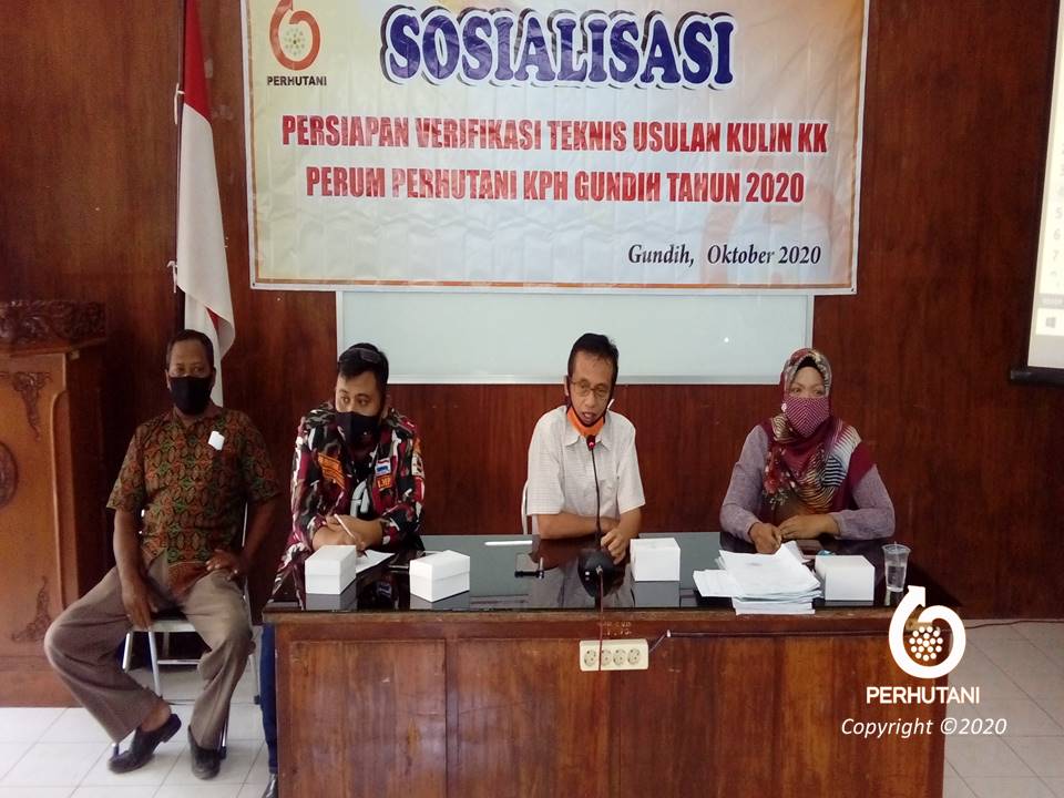 GUNDIH, PERHUTANI (06/10/2020) | Bertempat di Ruang Rapat Kesatuan Pemangkuan Hutan (KPH) Gundih dilaksanakan sosialisasi dalam rangka persiapan verifikasi teknis Pengakuan Kemitraan Kehutanan (Kulin KK) yang telah diusulkan oleh Lembaga Masyarakat Desa Hutan (LMDH) lewat pendampingan Laskar Merah Putih (LMP) yakni sebanyak 35 Lembaga, Selasa (05/10).
