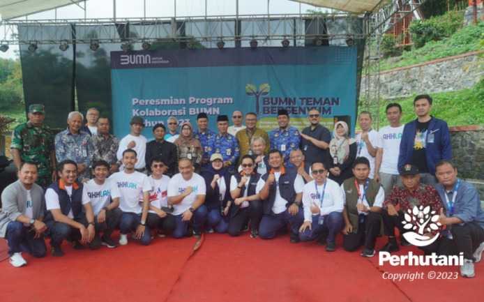 KEDU UTARA, PERHUTANI (20/11/2023) | Perhutani Kesatuan Pemangkuan Hutan (KPH) Kedu Utara menghadiri peresmian Program Tanggung Jawab Sosial Lingkungan (TJSL) Badan Usaha Milik Negara (BUMN) bertajuk “BUMN untuk Temanggung yang Bersih, Sehat dan Nyaman untuk Umum (BUMN TEMAN BERSENYUM)” di Kawasan Wisata Sindoro Water Park, Desa Rejosari, Kecamatan Bansari, Kabupaten Temanggung, Jumat (17/11).