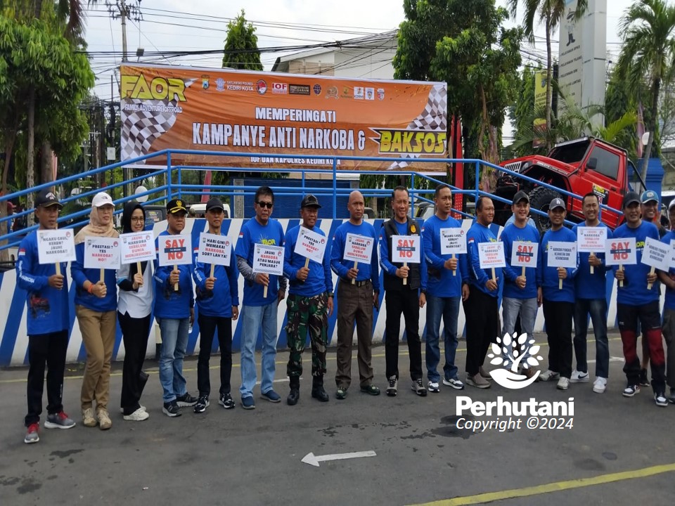 KEDIRI, PERHUTANI (21/10/2024) | Perum Perhutani Kesatuan Pemangkuan Hutan (KPH) Kediri turut berpartisipasi dalam kegiatan Kampanye Anti Narkoba, Off-Road, dan Bakti Sosial yang diselenggarakan di Kantor Satlantas Polres Kediri Kota, pada Minggu (20/10). Acara ini merupakan bagian dari upaya bersama untuk mengkampanyekan bahaya narkoba sekaligus menggelar kegiatan sosial di masyarakat.