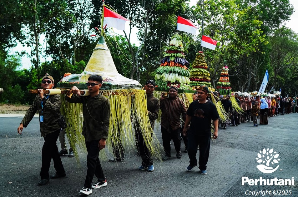 KEDU SELATAN, PERHUTANI (01/07/2025) | Perum Perhutani Kesatuan Pemangkuan Hutan (KPH) Kedu Selatan hadir dalam kirab gunungan tumpeng yang digelar di kawasan wisata Sagara View of Karangbolong, Desa Karangbolong, Kecamatan Buayan, Kabupaten Kebumen, pada Rabu (26/06).
