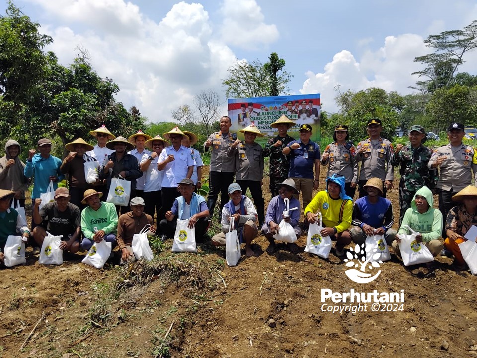 KEDIRI, PERHUTANI (21/11/2024) | Perum Perhutani Kesatuan Pemangkuan Hutan (KPH) Kediri bersinergi dengan Polres Kediri Kota dan berbagai stakeholder terkait dalam acara Launching Gugus Tugas Polri Mendukung Ketahanan Pangan, yang diadakan via Zoom serentak di seluruh Indonesia. Acara ini dilaksanakan di Petak 140 K Resort Pemangkuan Hutan (RPH) Pojok, Bagian Kesatuan Pemangkuan Hutan (BKPH) Kediri, Desa Puhrubuh, Kecamatan Semen, Kabupaten Kediri, pada Rabu (20/11).