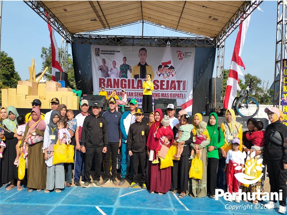 JATIROGO, PERHUTANI (21/09/2024) | Dalam rangka penutupan perayaan Hari Ulang Tahun (HUT) Republik Indonesia ke 79, Perhutani Kesatuan Pemangkuan Hutan (KPH) Jatirogo turut berpartisipasi dalam acara senam bersama dan jalan sehat yang dihadiri oleh Bupati Tuban, Aditya Halindra Faridzky. Acara tersebut berlangsung di Kecamatan Bangilan, dihadiri oleh berbagai elemen masyarakat pada Jumat (20/9).