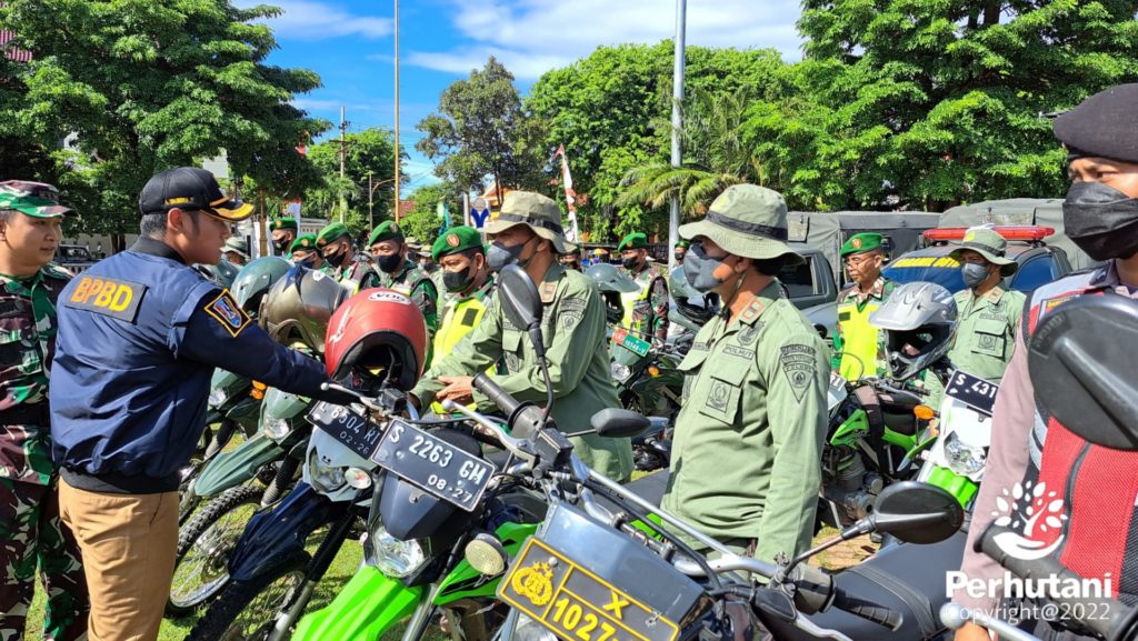 TUBAN, PERHUTANI (25/10/2022) | Perum Perhutani Kesatuan Pemangkuan Hutan (KPH) Tuban turut serta berpartisipasi dalam apel siaga gelar pasukan penanggulangan bencana alam yang digelar Pemerintah Kabupaten (Pemkab) Tuban, di Alun-alun Kabupaten Tuban, Selasa (25/10).