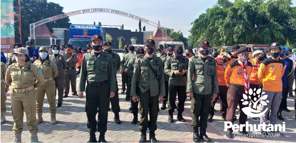 LAWU DS, PERHUTANI (13/11/2020) | Perhutani Kesatuan Pemangkuan Hutan (KPH) Lawu Ds mengikuti Apel Siaga Bencana Hidrometeorologi yang digelar Pemerintah Kabupaten (Pemkab) Ponorogo bertempat di Alun-alun Kabupaten Ponorogo, Kamis (12/11).