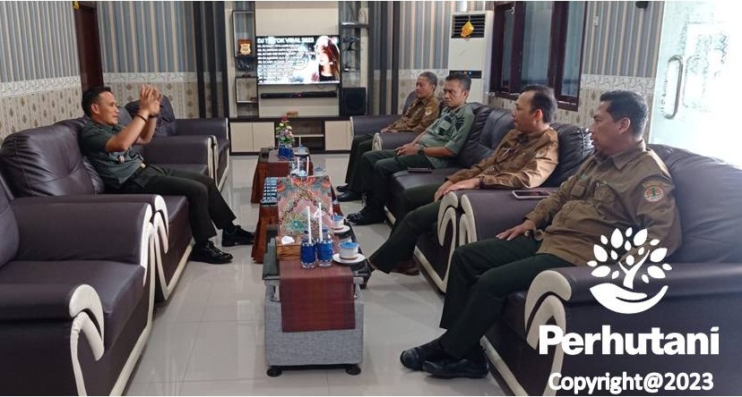 LAWU DS, PERHUTANI (18/07/2023) | Administratur Perum Perhutani Kesatuan Pemangkuan Hutan (KPH) Lawu Ds melakukan kunjungan ke Markas Komando Distrik Militer (Kodim) 0802 Ponorogo dalam rangka meningkatkan hubungan antara ke-dua lembaga, selain itu juga membahas upaya mengantisipasi bencana alam serta membahas kondisi keamanan kawasan hutan, Ponorogo, Selasa (18/07).
