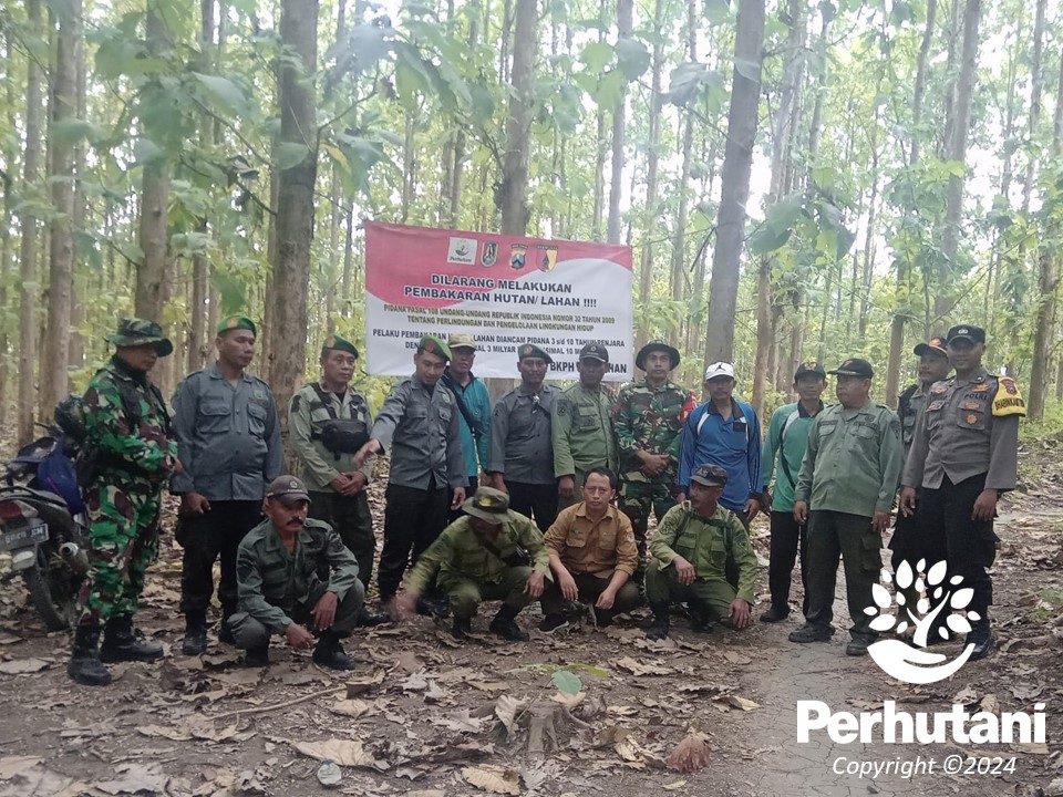 PERHUTANI-JATIROGO (12/06/2024) | Perhutani Kesatuan Pemangkuan Hutan (KPH) Jatirogo bersama Forum Koordinasi Pimpinan Kecamatan (Forkompincam) Tambakboyo, Kabupaten Tuban melaksanakan sosialisasi pencegahan kebakaran hutan di kawasan hutan Resort Pemangkuan Hutan (RPH) Dikir, Bagian Kesatuan Pemangkuan Hutan (BKPH) Ngulahan, Selasa(11/06).