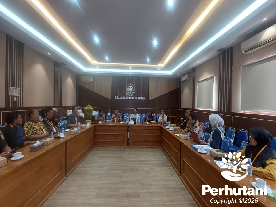 JATIROGO, PERHUTANI (09/01/2026) | Perhutani Kesatuan Pemangkuan Hutan (KPH) Jatirogo memperkuat sinergi dengan Kejaksaan Negeri (Kejari) Tuban melalui kegiatan peninjauan dan koreksi draf Perjanjian Kerja Sama (PKS) Agroforestry Tahun 2026 bertempat di ruang Adhyaksa Kantor Kejari Tuban Kamis (08/01).