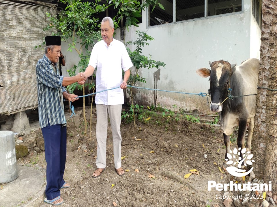 JATIROGO, PERHUTANI (30/06/2023) | Administratur Perum Perhutani Kesatuan Pemangkuan Hutan (KPH) Jatirogo secara simbolis menyerahkan hewan kurban kepada Takmir Musholla An-Nur Nurrohman dalam rangka merayakan Hari Raya Idul Adha 1444 H., di Halaman Musholla An-Nur Perhutani Jatirogo pada Kamis (29/06).