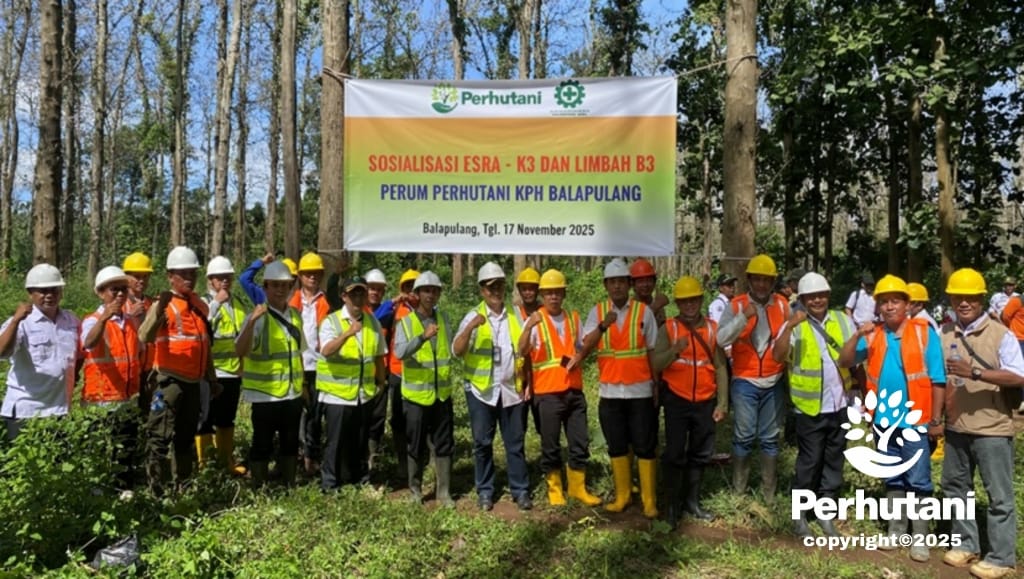BALAPULANG, PERHUTANI (17/11/2025) | Perhutani Kesatuan Pemangkuan Hutan (KPH) Balapulang mengadakan sosialisasi Environmental and Social Risk Assessment (ESRA) kepada para petani hutan terkait penggunaan bahan kimia dan Bahan Berbahaya dan Beracun (B3) di kawasan hutan, pada Senin (17/11).