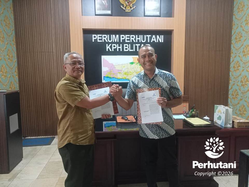 BLITAR, PERHUTANI (13/01/2026) | Perhutani Kesatuan Pemangkuan Hutan (KPH) Blitar, menandatangani Perjanjian Kerja Sama (PKS) Pemanfaatan Kawasan Hutan untuk sarana dan prasarana kegiatan pemanfaatan air dengan PT Greenfields Indonesia. yang dilaksanakan di Kantor Perhutani KPH Blitar, Jumat (13/01).