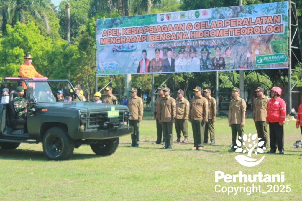 BONDOWOSO, PERHUTANI (17/10/2025) | Perhutani Kesatuan Pemangkuan Hutan (KPH) Bondowoso siap menghadapi potensi bencana hidrometeorologi di musim penghujan, hal itu disampaikan Administratur Perhutani KPH Bondowoso, Misbakhul Munir usai mengikuti Apel Kesiapsiagaan dan Gelar Peralatan Penanggulangan Bencana Hidrometeorologi yang digelar oleh Pemerintah Kabupaten Bondowoso, Jum’at (17/10).