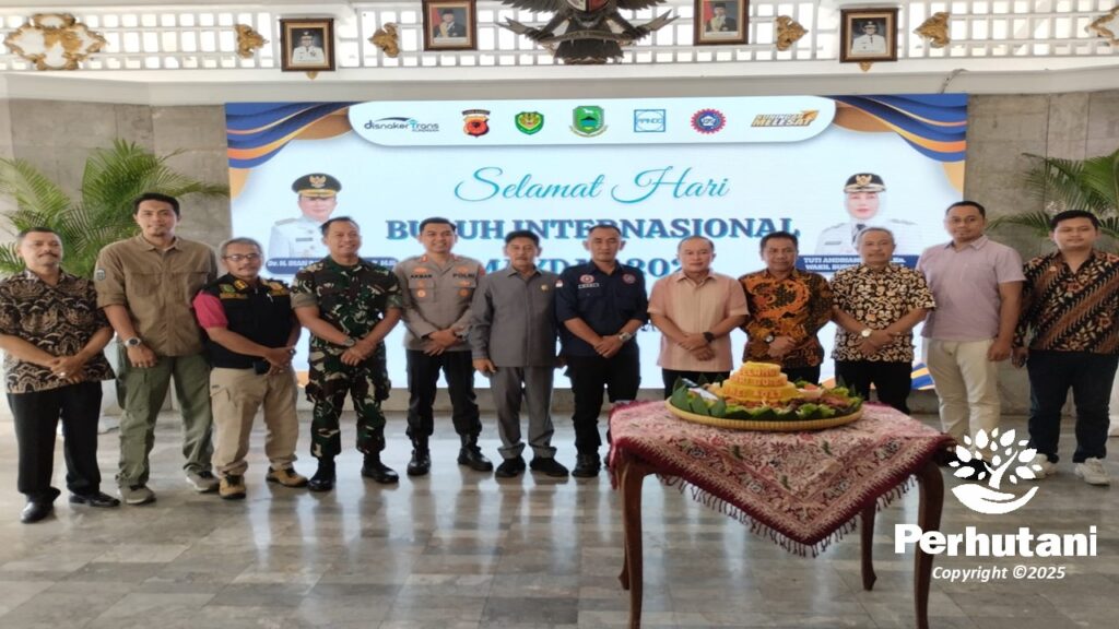 KUNINGAN, PERHUTANI (06/05/2025) | Perum Perhutani Kesatuan Pemangkuan Hutan (KPH) Kuningan bersama Forum Koordinasi Pimpinan Daerah (Forkopimda) Kabupaten Kuningan menghadiri peringatan Hari Buruh Internasional (May Day) 2025 yang diselenggarakan oleh Dinas Tenaga Kerja dan Transmigrasi (Disnakertrans) Kabupaten Kuningan serta KSPSI (Konfederasi Serikat Pekerja Seluruh Indonesia). Acara berlangsung di Balai Pendopo, Jalan Siliwangi, Kuningan.