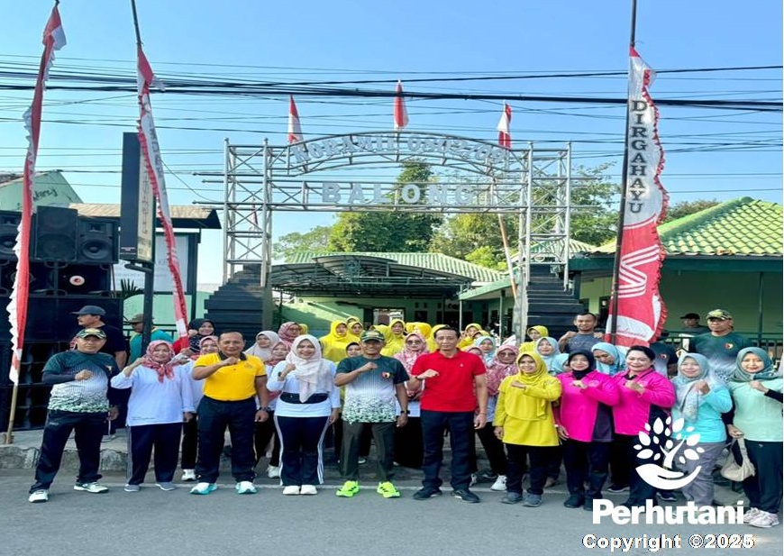 LAWU DS,PERHUTANI (09/10/2025) | Perhutani Kesatuan Pemangkuan Hutan (KPH) Lawu Ds menjalin sinergi harmonis dengan Tentara Nasional Indonesia (TNI) melalui kegiatan senam bugar sehat bersama dalam rangka memperingati Hari Ulang Tahun (HUT) TNI ke-80 tahun 2025 yang diselenggarakan oleh Koramil 0802-09/Balong, Kabupaten Ponorogo. (8/10)