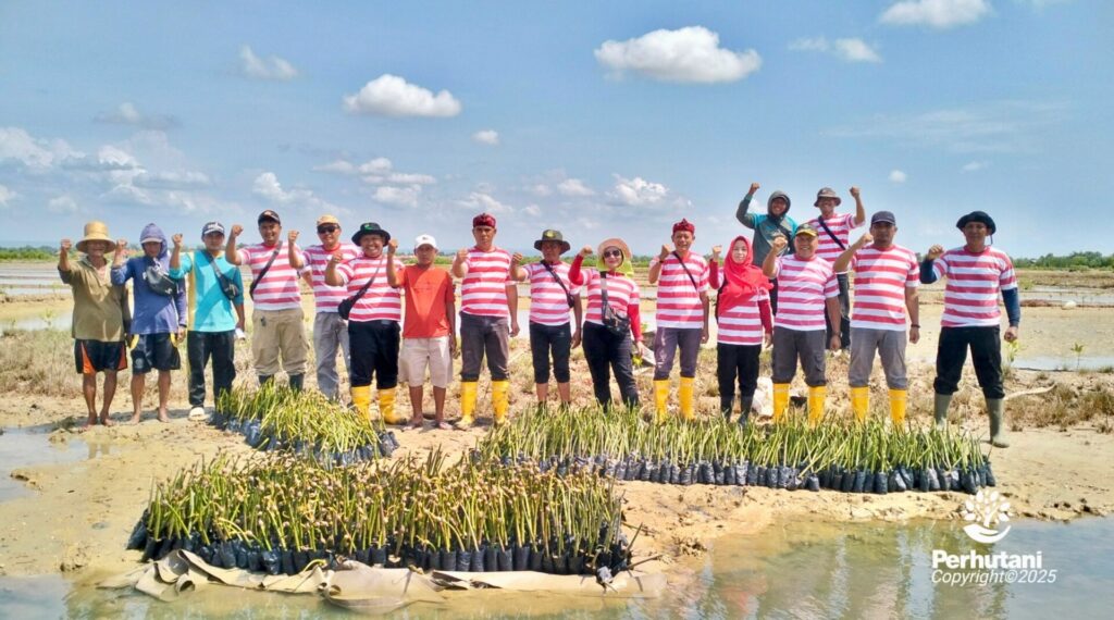 MADURA, PERHUTANI (29/11/2025) | Perhutani Kesatuan Pemangkuan Hutan (KPH) Madura Bersama Lembaga Masyarakat Desa Hutan (LMDH) Sumber Barokah melakukan kegiatan penanaman sekitar 1.000 bibit Mangrove di petak 64a wilayah Resort Pemangkuan Hutan (RPH) Pamekasan, Bagian Kesatuan Pemangkuan Hutan (BKPH) Madura Timur pada Jum’at, (28/11).