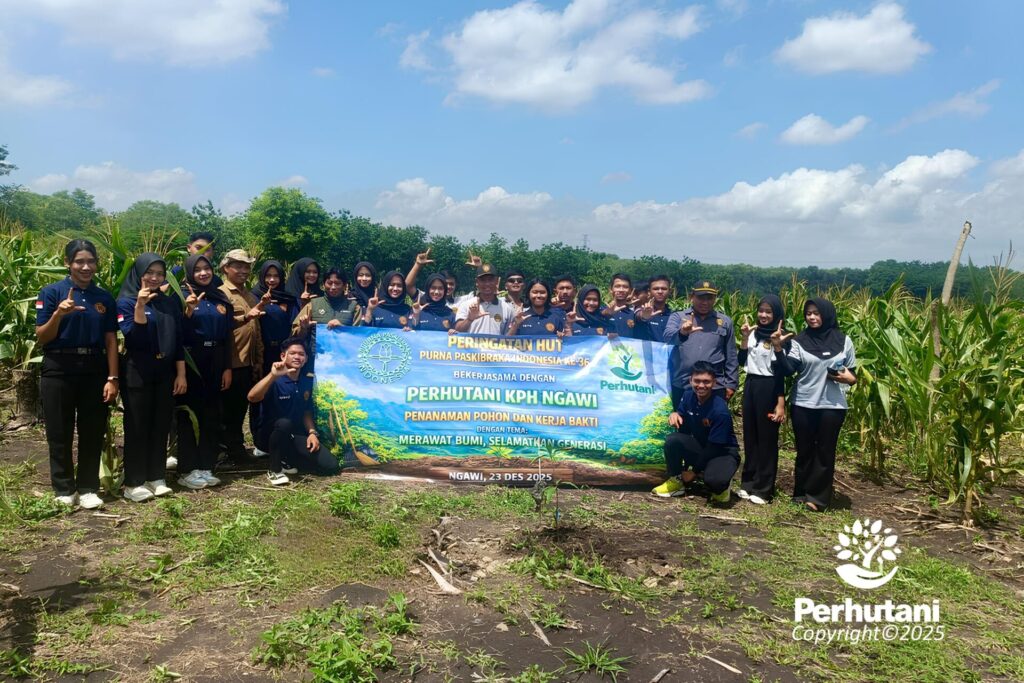 NGAWI, PERHUTANI (24/12/2025) | Perum Perhutani Kesatuan Pemangkuan Hutan (KPH) Ngawi bersama Purna Paskibraka Indonesia (PPI) Kabupaten Ngawi melaksanakan kegiatan penanaman pohon di Persemaian Kucur, wilayah kerja KPH Ngawi, Selasa (23/12).