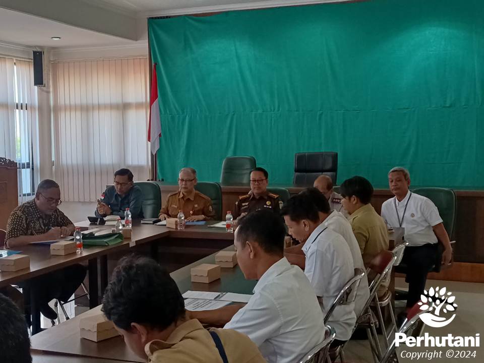 PADANGAN, PERHUTANI (26/08/2024) | Perhutani Kesatuan Pemangkuan Hutan (KPH) Padangan menghadiri rapat terkait progres pengadaan tanah untuk pembangunan Bendungan Karangnongko yang berlangsung di Kantor Kejaksaan Negeri Bojonegoro, pada Senin (26/08).