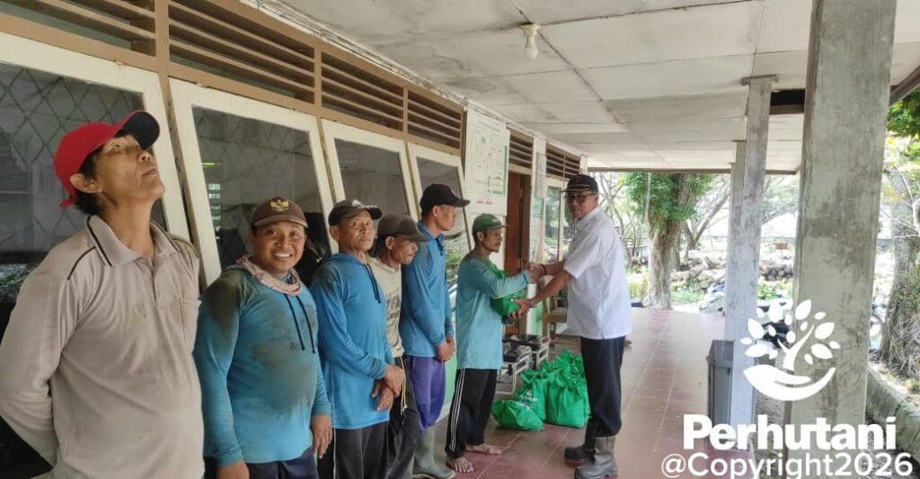 PARENGAN,PERHUTANI (09/3/2026)  |  Wujud kepedulian terhadap para pekerja lapangan kembali ditunjukkan oleh Perum Perhutani Divisi Regional Jawa Timur. Melalui Kesatuan Pemangkuan Hutan Parengan, perusahaan menyalurkan bantuan paket sembako kepada para tenaga angkut yang bekerja di Tempat Penimbunan Kayu Brangkal (TPK Brangkal) Senin (09/3)