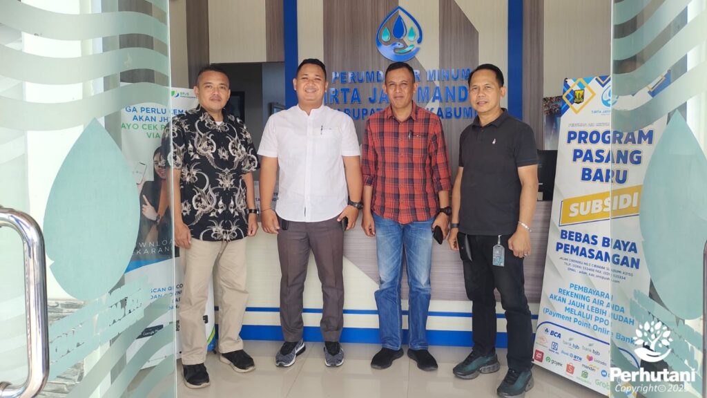 Teten, Kasi Perencanaan dan Pengembangan Bisnis Perhutani KPH Sukabumi, bersama dengan jajarannya, Chendra dan Jojon Rihana, mewakili Administratur Perhutani KPH Sukabumi dalam pertemuan tersebut. Fokus utama pembahasan adalah pentingnya menjaga kelestarian daerah tangkapan air (catchment area), yang merupakan hulu dari sistem penyediaan air bersih. Sebagai bagian dari kolaborasi, Perhutani mengajak Perumda Tirta Jaya Mandiri untuk menanam pohon dan vegetasi lainnya di sekitar mata air dan daerah hulu. Akar tanaman diharapkan dapat membantu menyerap dan menyimpan air hujan, serta mencegah erosi tanah yang dapat menyebabkan penyumbatan mata air.