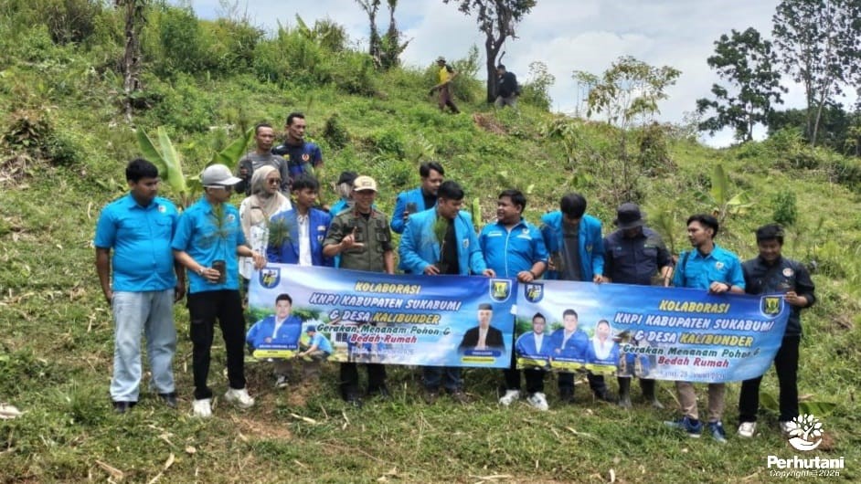 SUKABUMI, PERHUTANI (05/02/2026) | Perum Perhutani Kesatuan Pemangkuan Hutan (KPH) Sukabumi memfasilitasi dan melaksanakan kegiatan penanaman pohon sebagai bagian dari upaya pengelolaan hutan berkelanjutan. Kegiatan tersebut dilaksanakan bersama Dewan Pengurus Komite Nasional Pemuda Indonesia (KNPI) Kabupaten Sukabumi dengan menanam ratusan bibit pohon pinus dan tanaman buah-buahan di areal Petak 21d, Resort Pemangkuan Hutan (RPH) Ciguha, Bagian Kesatuan Pemangkuan Hutan (BKPH) Cikawung, Kamis (05/02/2026).