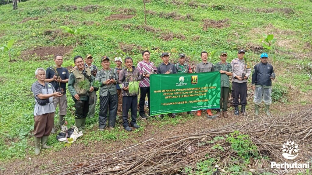 SUKABUMI, PERHUTANI (24/12/2025) | Dalam rangka memperkuat upaya mitigasi bencana dan pemulihan lingkungan, Perum Perhutani Kesatuan Pemangkuan Hutan (KPH) Sukabumi secara berkelanjutan melaksanakan kegiatan penanaman pohon. Kegiatan tersebut dipimpin langsung oleh Administratur Perhutani KPH Sukabumi dan melibatkan unsur pemerintah, TNI, Polri, serta masyarakat, yang berlokasi di Petak 47D RPH Buniwangi BKPH Palabuhanratu pada Rabu (24/12).