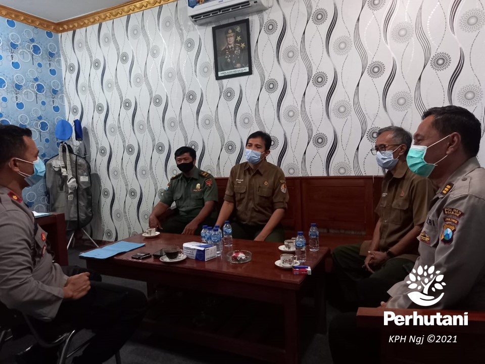 NGANJUK, PERHUTANI (8/9/2021) | Administratur Perhutani Kesatuan Pemangkuan Hutan (KPH) Nganjuk Wahyu Dwi Hadmodjo melakukan kunjungan ke Kapolres Nganjuk dalam rangka koordinasi sinergi pengamanan dan pencegahan kebakaran hutan, berlangsung di Mapolres Nganjuk, Selasa (7/9).