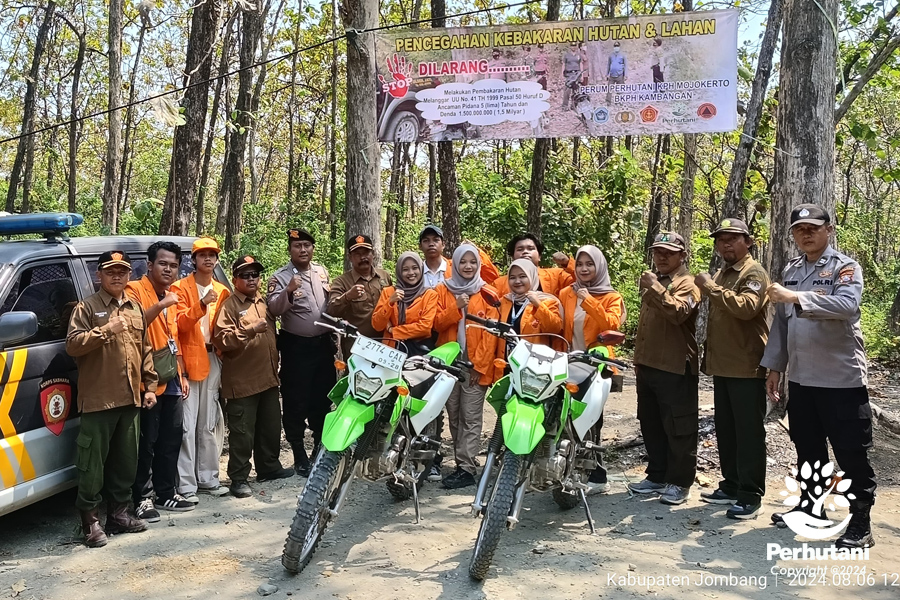 MOJOKERTO, PERHUTANI (06/08/2024) | Perum Perhutani Kesatuan Pemangkuan Hutan (KPH) Mojokerto bersama Kepolisian Sektor Ngimbang dan Mahasiswa Kuliah Kerja Lapangan (KKL) Universitas Negeri Jambi (UNJA) mengadakan patroli pencegahan Kebakaran Hutan dan Lahan (Karhutla) serta Gangguan Keamanan Hutan (Gukamhut) di kawasan hutan Resort Pemangkuan Hutan (RPH) Grenjengan, Bagian Kesatuan Pemangkuan Hutan (BKPH) Kambangan, pada Selasa (6/8).