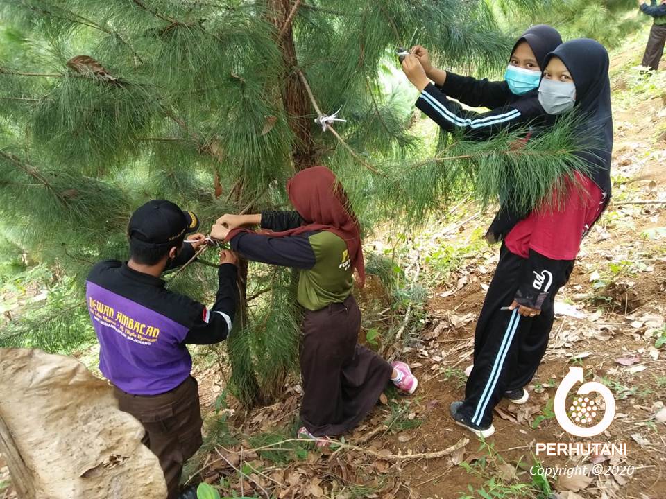 BANYUMAS BARAT, PERHUTANI (30/09/2020) | Pramuka Dewan Ambalan SMK Muhammadiyah Majenang, Cilacap mengikuti kegiatan dan pelatihan pencangkokan pohon pinus di Bagian Kesatuan Pemangkuan Hutan (BKPH) Wanareja, Kesatuan Pemangkuan Hutan (KPH) Banyumas Barat, Selasa (29/09).