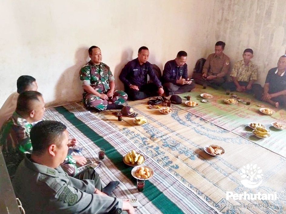 LAWU DS, PERHUTANI (18/09/2024) | Perum Perhutani Kesatuan Pemangkuan Hutan (KPH) Lawu Ds menggelar sosialisasi pencegahan kebakaran hutan dan lahan (Karhutla) bersama Danramil Bungkal. Kegiatan ini diadakan untuk para mitra kerja Lembaga Masyarakat Desa Hutan (LMDH) dan masyarakat di wilayah kerja Bagian Kesatuan Pemangkuan Hutan (BKPH) Ponorogo Selatan, Ponorogo, pada Rabu (18/09).