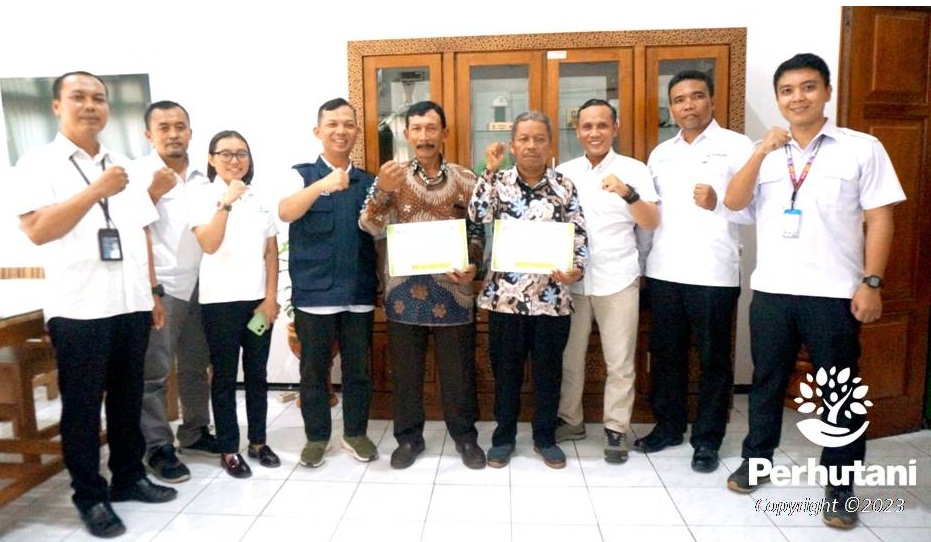 LAWU DS, PERHUTANI (27/12/2023) | Perhutani Kesatuan Pemangkuan Hutan (KPH) Lawu Ds menyalurkan bantuan dana dari program sosial Tanggung Jawab Sosial dan Lingkungan (TJSL) Non Pendanaan Usaha Mikro dan Kecil (PUMK) kepada 2 (dua) Lembaga Masyarakat Desa Hutan (LMDH) total Rp. 55 juta, bertempat di Ruang Kerja Administratur pada Rabu (27/12).