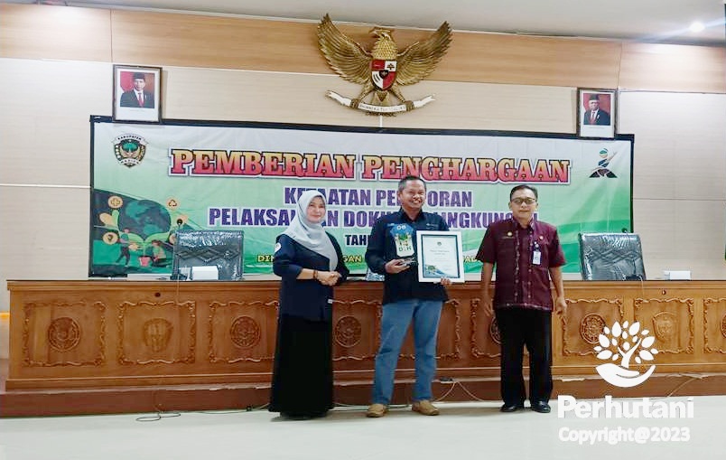 LAWU DS, PERHUTANI (26/05/2023) | Perhutani Kesatuan Pemangkuan Hutan (KPH) Lawu Ds menerima penghargaan dalam hal Ketaatan Pelaporan Dokumen Lingkungan dari Dinas Lingkungan Hidup (DLH) Pemerintah Kabupaten Madiun yang dilaksanakan di Kantor DLH Ruang Eka Kapti Caruban-Madiun, Jumat (26/05).