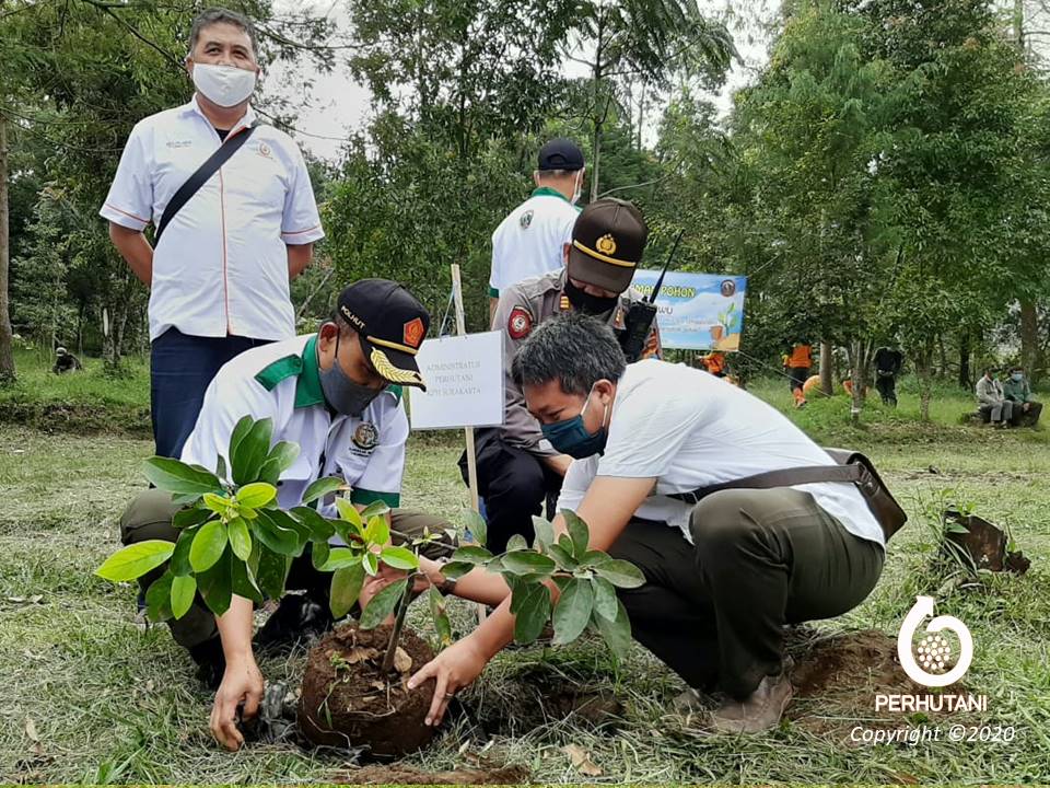 SURAKARTA, PERHUTANI (10/06/2020) | Perhutani Kesatuan Pemangkuan Hutan (KPH) Surakarta bersama komunitas Jaksa Pelaksana Lestari Alam Wisata Unggulan (JALAK LAWU) Kejaksaan Negeri Karanganyar mengadakan kegiatan penanaman pohon bersama di wana wisata Cemoro Kandang, Pos Pendakian Gunung Lawu, petak 63 Resort Pemangkuan Hutan (RPH) Blumbang, Bagian Kesatuan Pemangkuan Hutan (BKPH) Lawu Utara, Rabu (10/06).