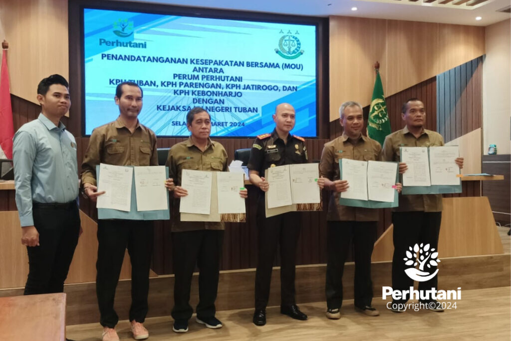 PARENGAN, PERHUTANI (26/03/2024) | Kesatuan Pemangkuan Hutan (KPH) Parengan, bersama dengan KPH Kebonharjo, KPH Tuban, dan KPH Jatirogo melakukan kerjasama dengan Kejaksaan Negeri Tuban di bidang Perdata dan Tata Usaha Negara yang ditandai dengan penandatanganan Memorandum of Understanding (MoU) di Tuban, Selasa (26/03).