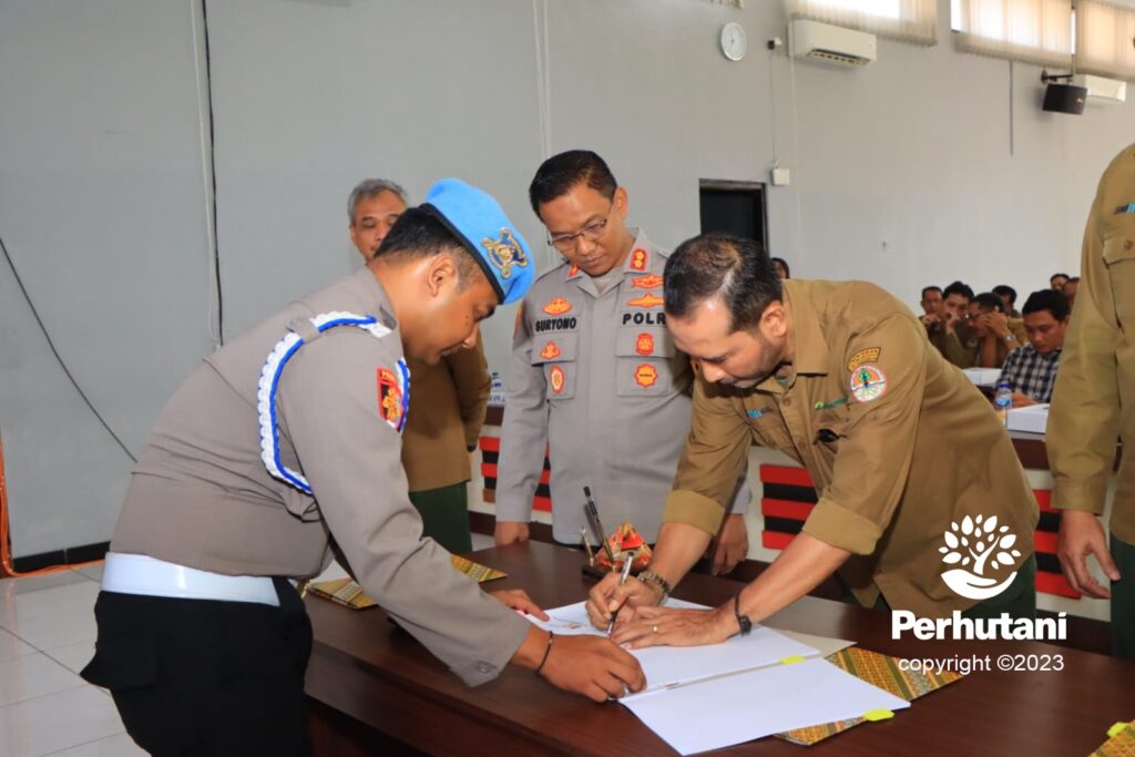 PARENGAN, PERHUTANI (06/12/2023) | Perum Perhutani Kesatuan Pemangkuan Hutan (KPH) Parengan melakukan kerjasama dalam bidang perlindungan kawasan hutan yang ditandai dengan direalisasikannya penandatanganan Perjanjian Kerjasama (PKS) antara Perhutani dengan Polres Tuban yang dilaksanakan di Markas Kepolisian Resor (Mapolres) Tuban pada Selasa (06/12).