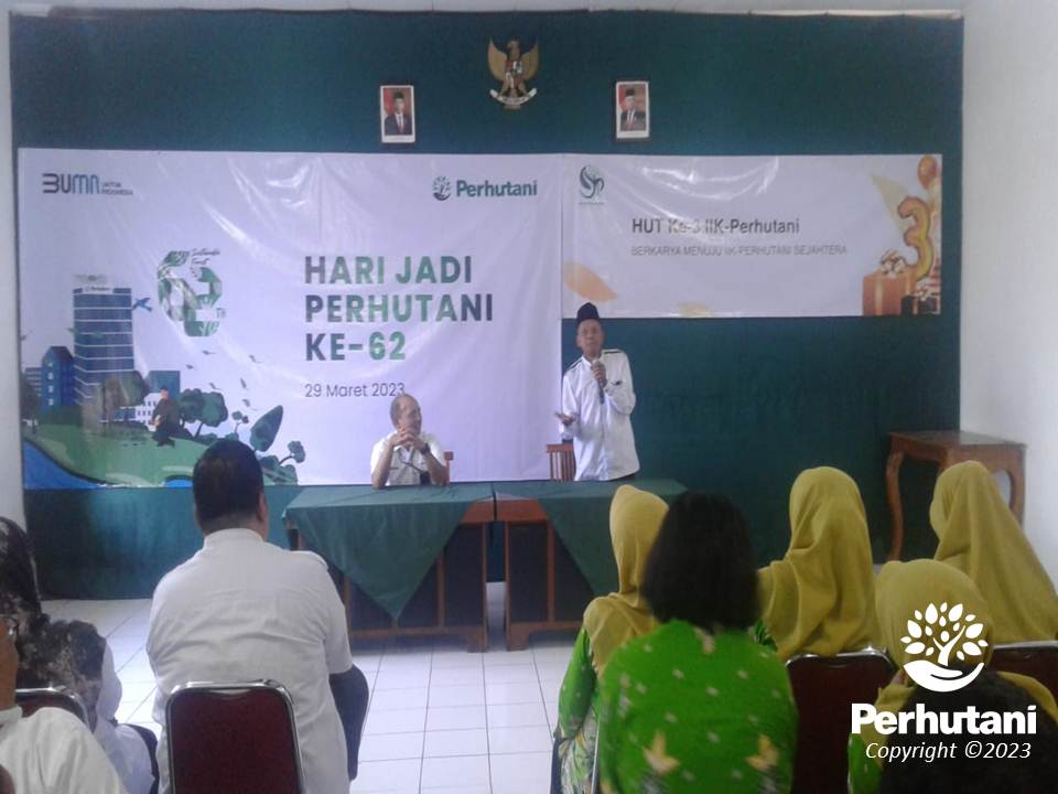 Administratur KPH Kedu Utara Damanhuri menyampaikan ucapan selamat hari jadi Perhutani ke-62 dan memberikan semangat kepada seluruh karyawan-karyawati KPH Kedu Utara apapun tantangan yang akan dihadapi di masa depan terlebih lagi untuk karyawan yang muda-muda yang lama masa pensiunnya.