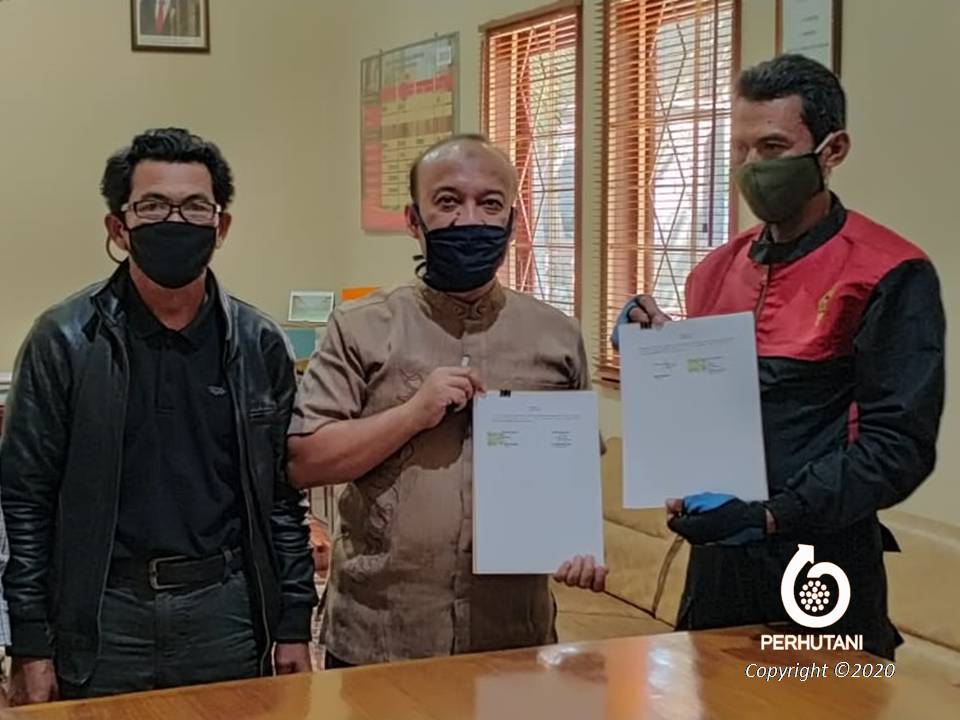 GARUT, PERHUTANI (26/7/2020) | Perhutani Kesatuan Pemangkuan Hutan (KPH) Garut mengadakan pertemuan dengan pengurus Lembaga Masyarakat Desa Hutan (LMDH) Jaya Mandiri untuk musyawarah dan penandatanganan perjanjian kerja sama usaha jasa lingkungan wisata ‘Karacak Valley, bertempat di Kantor KPH Garut, Jumat (24/7).