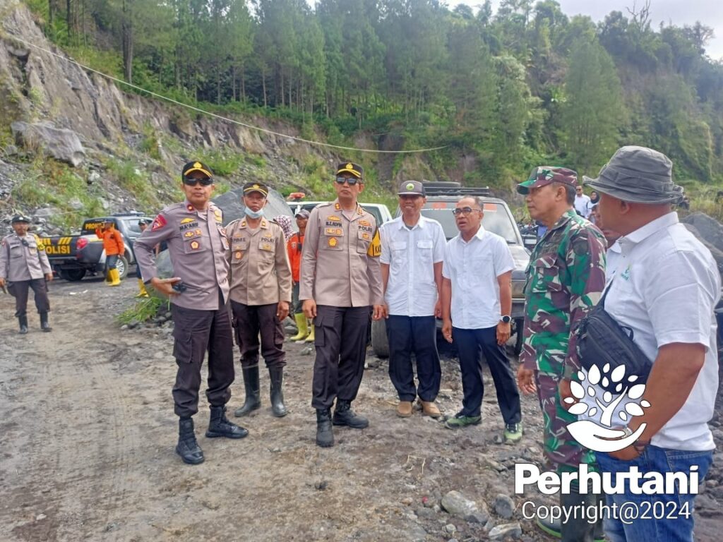 PROBOLINGGO, PERHUTANI (06/06/2024) Perum Perhutani Kesatuan Pemangkuan Hutan (KPH) Probolinggo bersama dengan Pj Bupati Lumajang dan FORKOPIMDA Kabupaten Lumajang meninjau lokasi bencana alam tanah longsor petak 4w Kelas Hutan TBK Resort Pemangkuan Hutan (RPH) Sumberowo, Bagian Kesatuan Pemangkuan Hutan (BKPH) Pronojiwo, Sub Kesatuan Pemangkuan Hutan (SKPH) Lumajang, KPH Probolinggo, Administratif Pemerintahan Desa Pronojiwo Kecamatan Pronojiwo Kabupaten Lumajang, pada Rabu (05/06).