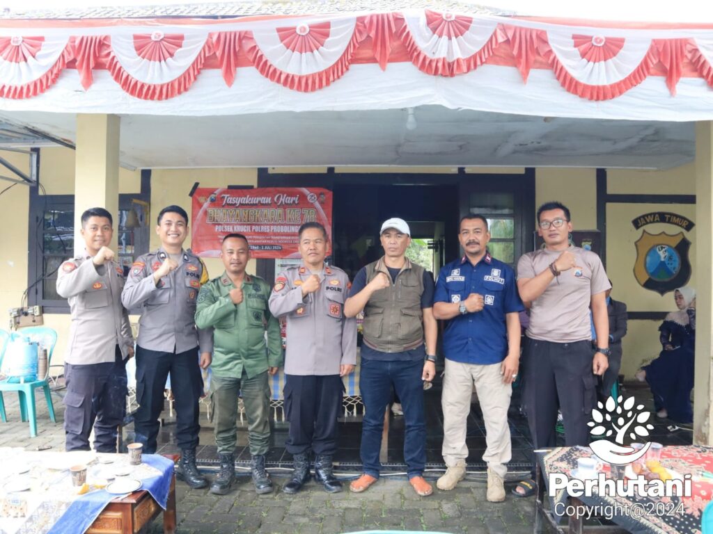 PROBOLINGGO, PERHUTANI (05/07/2024) Dalam rangka memperingati Hari Bhayangkara Ke-78, Perhutani Kesatuan Pemangkuan Hutan (KPH) Probolinggo, yang diwakili Komandan Regu Polisi Hutan Mobil (Danru Polhutmob) Perhutani KPH Probolinggo dan Kepala Resort Pemangkuan Hutan (KRPH) Krucil menghadiri acara tasyakuran yang digelar Polsek Krucil di Kantor Polsek Krucil Kecamatan Krucil Kabupaten Probolinggo, pada Kamis (04/07).