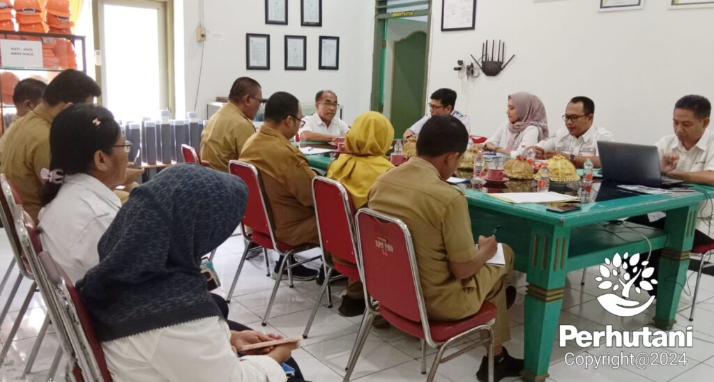 PROBOLINGGO, PERHUTANI (02/07/2024) Perum Perhutani Kesatuan Pemangkuan Hutan (KPH) Probolinggo bersama dengan Sekretaris Daerah Kabupaten Probolinggo, Kepala Bidang Pengelolaan Barang Milik Daerah Badan Pendapatan, Pengelolaan Keuangan dan Aset Daerah (BPPKAD) Kabupaten Probolinggo dan Kepala Bidang Pariwisata Dinas Kepemudaan, Olahraga dan Pariwisata Kabupaten Probolinggo menggelar rapat koordinasi membahas inventarisasi aset dan potensi wisata di dalam kawasan hutan pengelolaan Perhutani KPH Probolinggo di Ruang Controlled Wood Kantor Perhutani KPH Probolinggo, pada Senin (01/07)