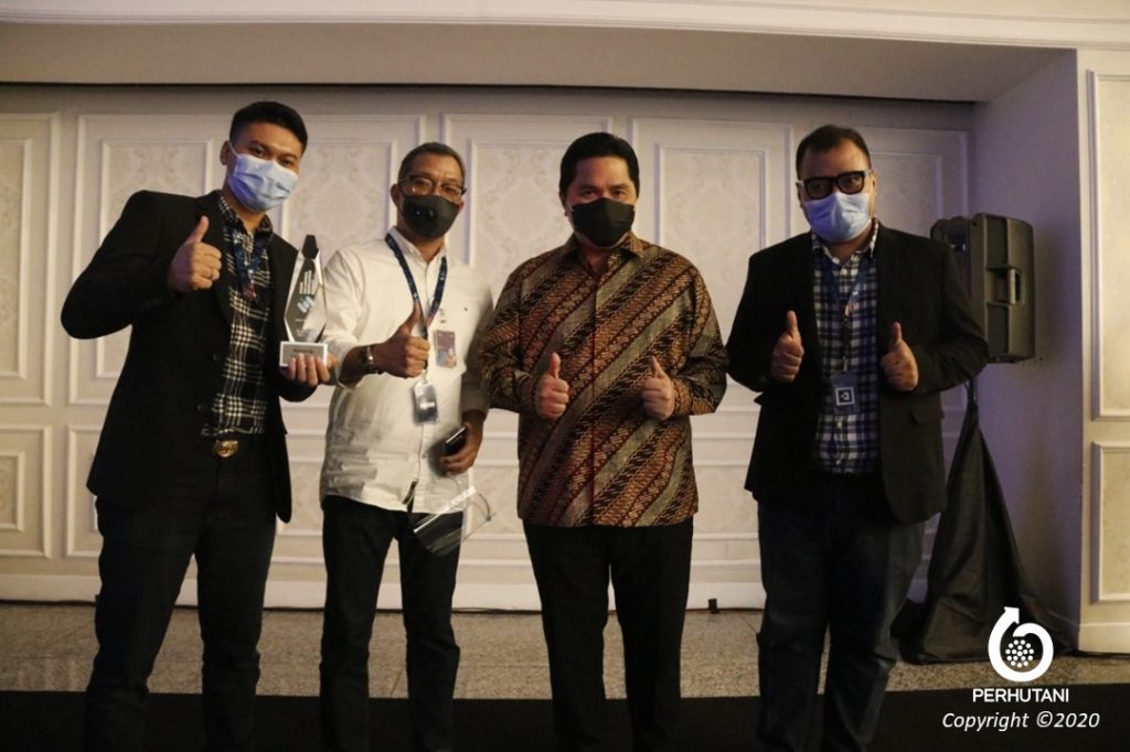 Penghargaan diserahkan langsung oleh Erick Thohir kepada Munawar Sukowati dan Doddy Juli Irawan yang merupakan Tim inovasi dari Perum Perhutani.