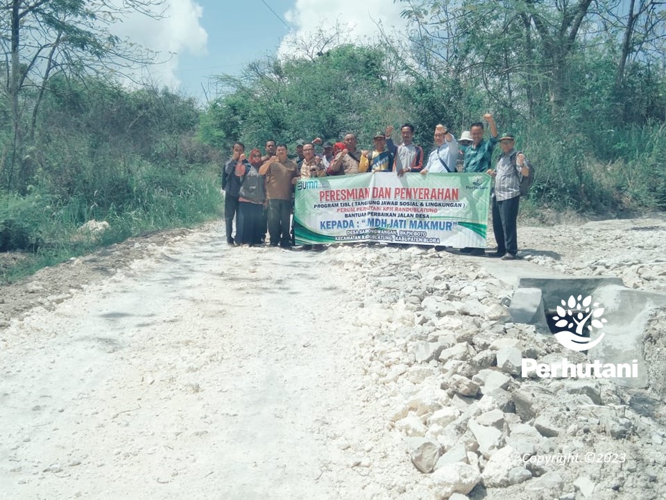 RANDUBLATUNG, PERHUTANI (15/12/2023) | Perhutani Kesatuan Pemangkuan Hutan (KPH) Randublatung menyalurkan bantuan kepada Lembaga Masyarakat Desa Hutan (LMDH) Jati Makmur Desa Sambongwangan untuk perbaikan jalan melalui program Tanggung Jawab Sosial dan Lingkungan (TJSL), Kamis (14/12).