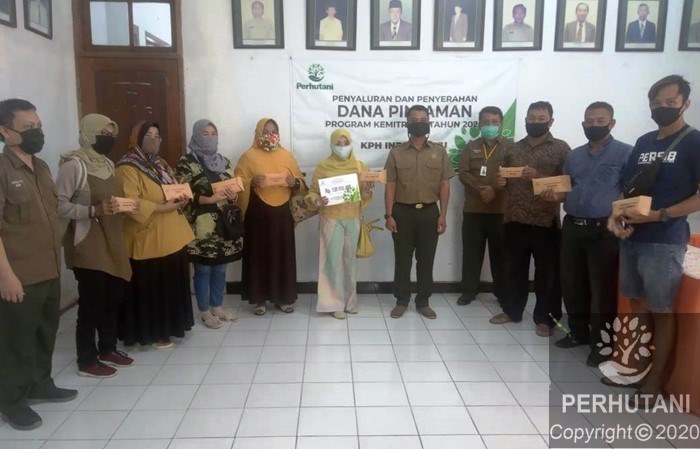 INDRAMAYU, PERHUTANI (10/11/2020) | Perhutani Kesatuan Pemangkuan Hutan (KPH) Indramayu, menyerahkan dana Program Kemitraan dan Bina Lingkungan (PKBL) berupa pinjaman modal usaha sebesar Rp 135 juta kepada 8 orang mitra binaan bertempat di aula kantor KPH Indramayu, Senin (09/11).