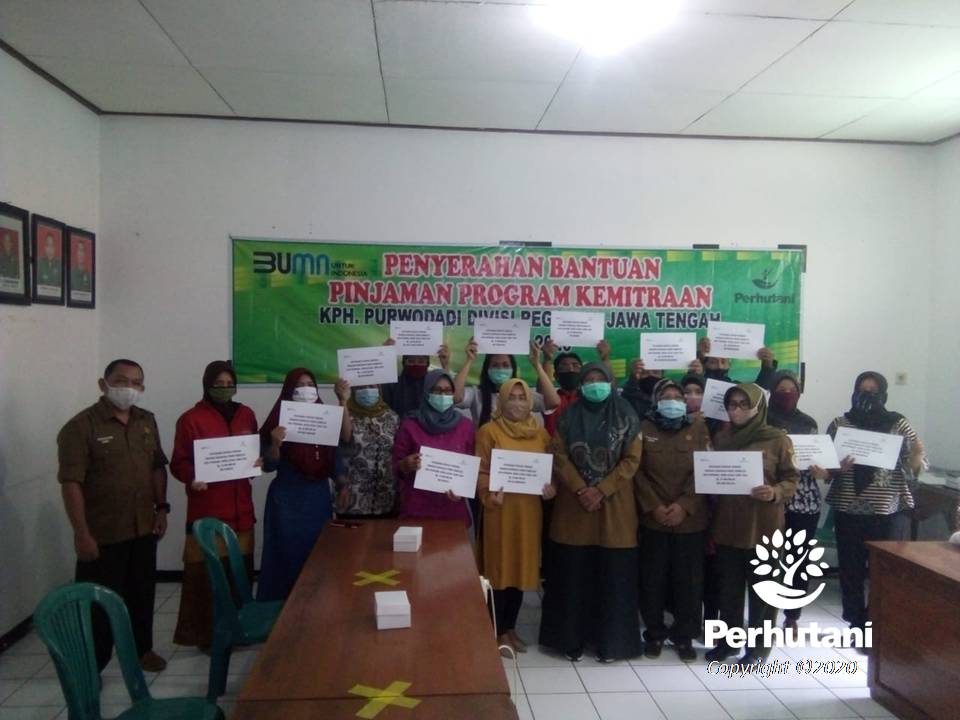 PURWODADI, PERHUTANI (1/12/2020) | Perhutani Kesatuan Pemangkuan Hutan (KPH) Purwodadi menyerahkan dana pinjaman Program Kemitraan dan Program Bina Lingkungan (PKBL) sejumlah Rp 190 juta kepada 15 mitra binaan, bertempat di Ruang Rapat KPH Purwodadi, Senin (30/11).