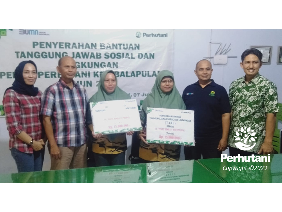 BALAPULANG, PERHUTANI (12/07/2023) | Perhutani Kesatuan Pemangkuan Hutan (KPH) Balapulang memberikan bantuan uang tunai melalui program Tanggung Jawab Sosial dan Lingkungan (TJSL) kepada 2 (dua) Taman Kanak-Kanak (TK) di Balapulang senilai Rp30.000.000 (tiga puluh juta rupiah), Selasa (11/07).