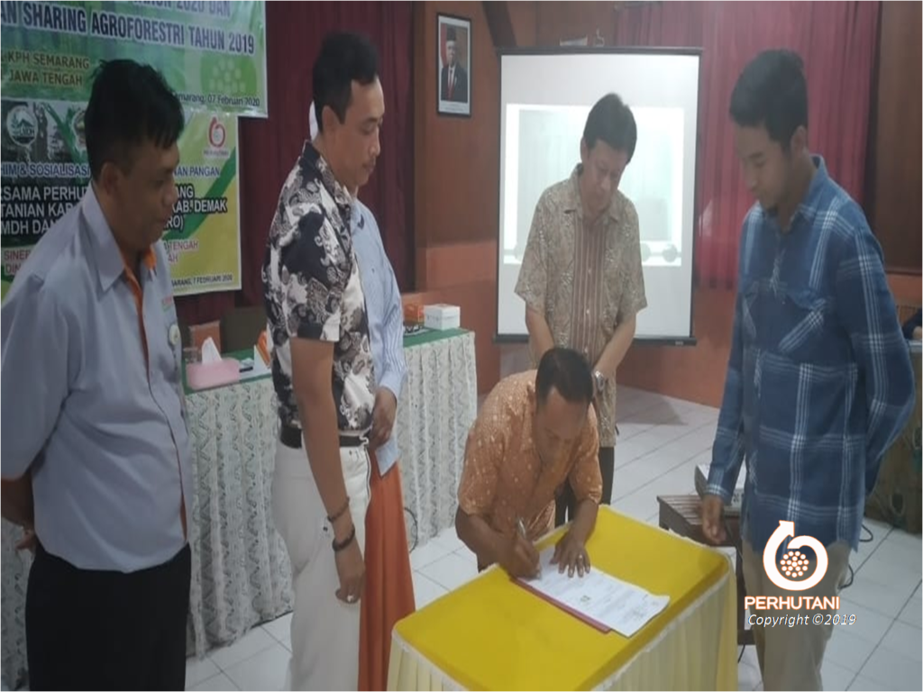 Perjanjian tersebut ditandatangani oleh Administratur KPH Semarang Khaerudin dan Ketua LMDH sewilayah KPH Semarang, dilanjutkan pembagian sharing sebesar Rp 19 juta.