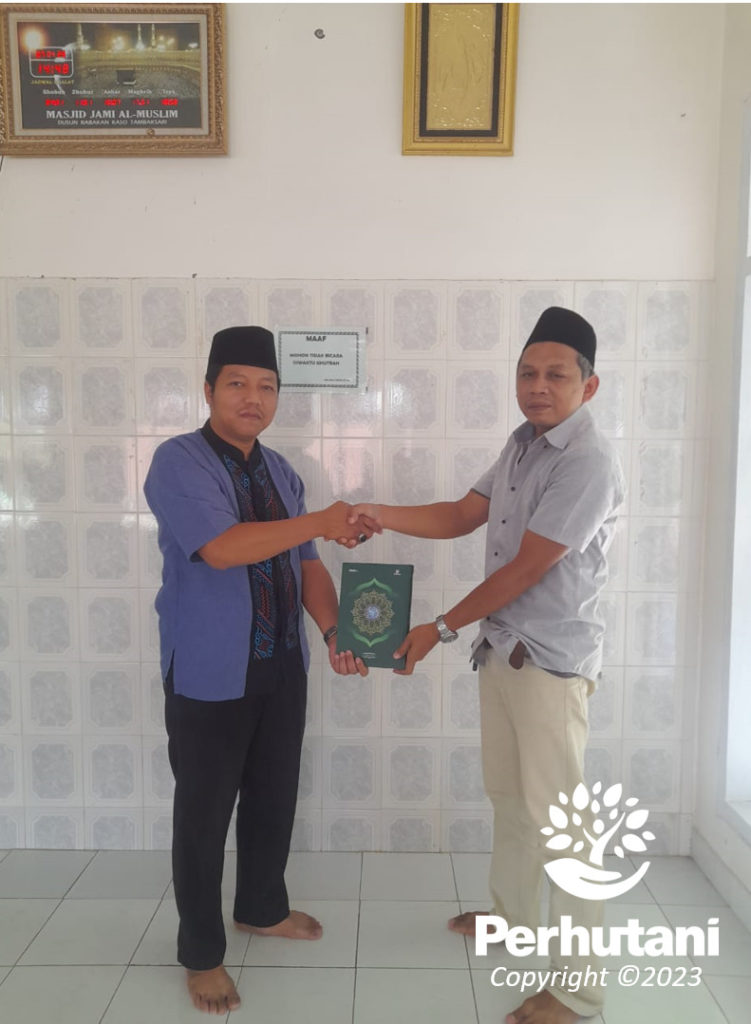 CIAMIS, PERHUTANI (07/04/2023) | Di Bulan Ramadhan 1444 H, Perum Perhutani Kesatuan Pemangkuan Hutan (KPH) Ciamis menyerahkan 10 mushaf  Al-Quran kepada  pengurus masjid  Masjid Al Muslim Dusun Babakan, Desa Kaso, Kecamatan Tambaksari, Kabupaten Ciamis, Jumat (07/04).