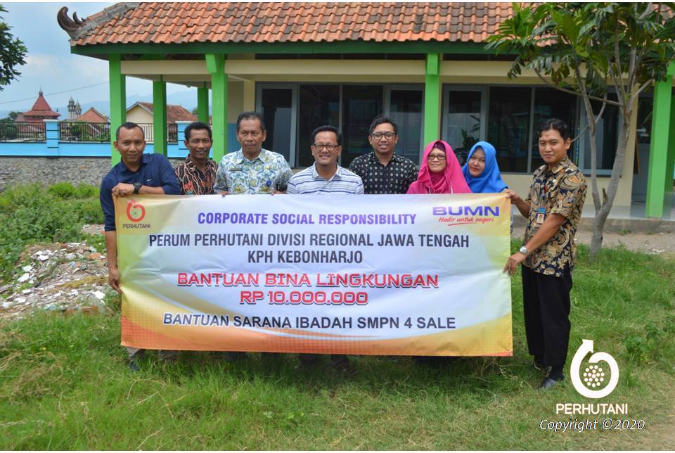 KEBONHARJO, PERHUTANI (23/1/2020) | Perhutani Kesatuan Pemangkuan Hutan (KPH) Kebonharjo menyerahkan bantuan Program Bina Lingkungan kepada Pengurus Mushola Al Hikmah SMP Negeri 4 Sale Rembang, Kamis (23/01).