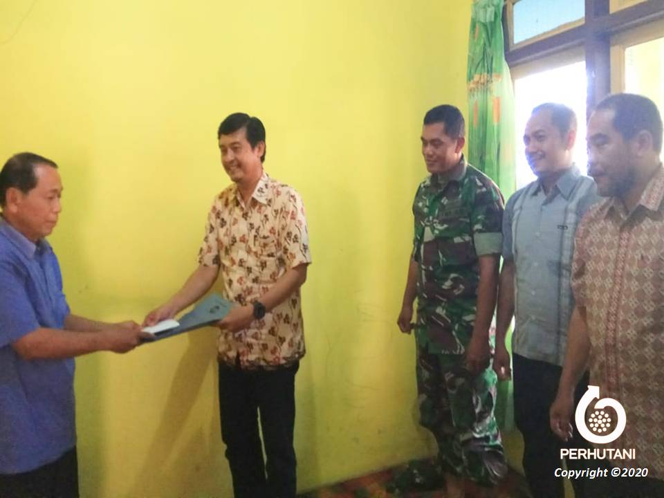 BALAPULANG, PERHUTANI (2/3/2020) | Bertempat di Sekretariat LMDH Wana Lestari Desa Galuh Timur Kecamatan Tonjong, Perhutani Kesatuan Pemangkuan (KPH) Balapulang menyerahkan bantuan dana Bina Lingkungan untuk pembangunan sarana dan prasarana air bersih Mushola Nurul Anshor Dukuh Makamdawa di Tonjong Kabupaten Brebes, Jumat (28/2).