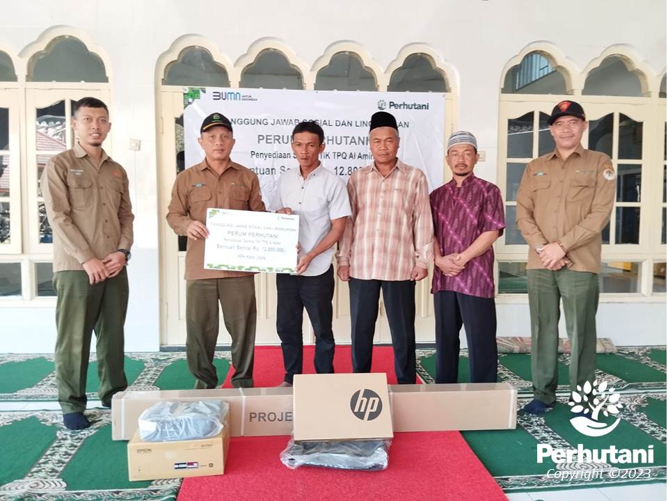 KEDU UTARA, PERHUTANI (27/06/2023) | Perhutani Kesatuan Pemangkuan Hutan (KPH) Kedu Utara menyalurkan bantuan Tanggung Jawab Sosial dan Lingkungan (TJSL) non Pendanaan Usaha Mikro dan Keci (PUMK) berupa Laptop, Projector dan Screen Projector senilai Rp 12.800.000 untuk mengembangkan sarana dan prasarana Taman Pendidikan Al-Quran (TPQ) Al-Amin, di Dusun Gowok Ringin, Desa Sengi, Kecamatan Dukun, Kabupaten Magelang, Selasa (27/06).